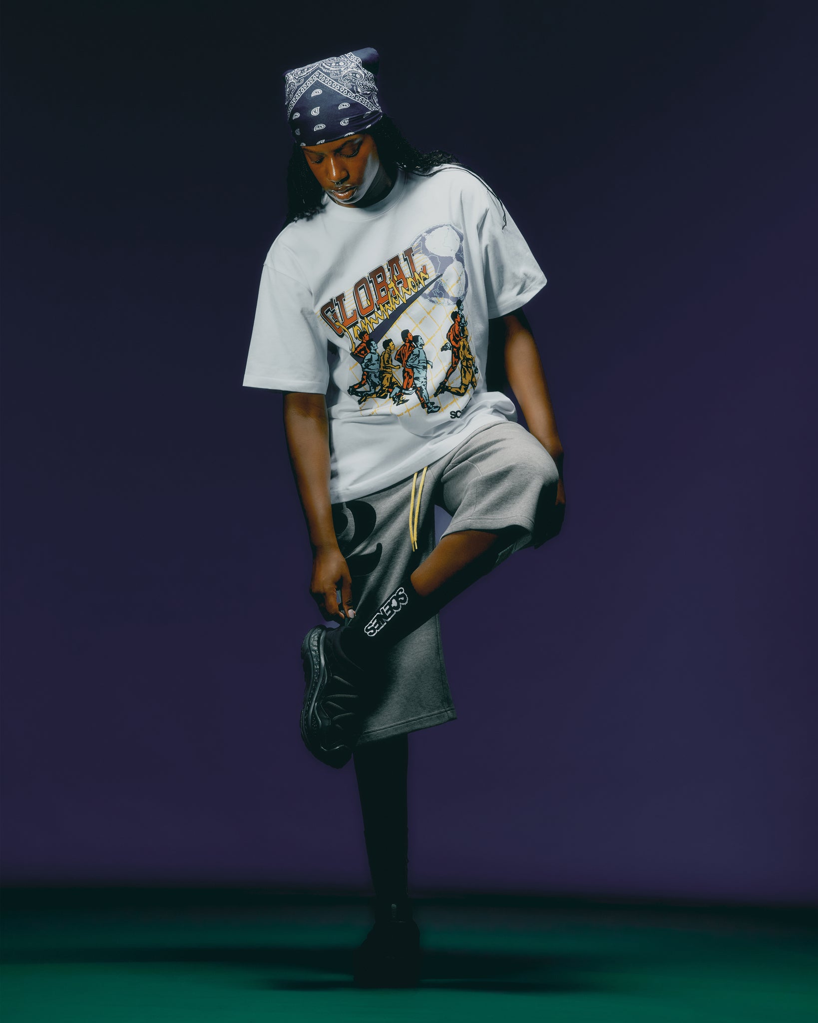 A FULLY CUT & SEW RANGE OF ALL GROUNDS TEAMWEAR INCLUDING A BRUSHED BACK GK FLEECE, TEXTURED FLEECE THREE QUARTER-LENGTH TRAINING PANTS, OVERSIZE SCREEN PRINT LONG SLEEVE, CONTRAST STITCH TEE, KNIT PLAY SOCKS AND METAL EYELET SIDELINE SNAPBACK HAT—READY-TO-PLAY AND DESIGNED FOR THE UNFORGIVING TURF OF NEW YORK CITY IN THE SPIRIT OF GLOBAL SOCCER DOMINATION